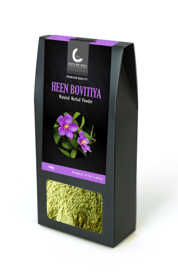 | Ingredients | Powder of natural Leaves & Flowers of Heen Bovitiya (Osbeckia octandra). |